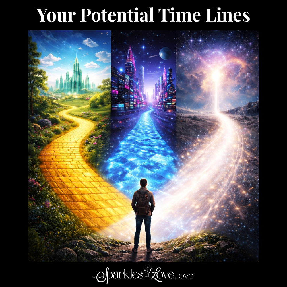 As you travel along the Yellow Brick Road, the Blue Diamond Path, and the Light Runway, you experience alternate versions of your reality — each revealing unique expressions of health, relationships, prosperity, self-love, and awakening. Through guided awareness, you are given the sacred opportunity to select, merge, or upgrade your current life timeline in alignment with your soul’s highest destiny.